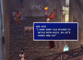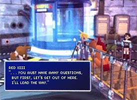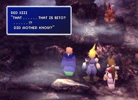 Moment-Clé : Red XIII Cosmos Canyon La ville natale de Red XIII. La terre d'origine pour de l'Etude de la Vi de la Planète, il est enseigné à Cloud et les autres les fondements de la vie la planète par le sage professeur BugenHagen. Midgar Red XIII, qui est tenu captif à la Tour ShinRa comme expérience de laboratoire, rencontre l'équipe de Cloud et fini par se joindre à leur cause. Le Cargo Un bateau que Red XIII et ses amis prennent. Il a été difficil de tromper l'ennemi avec son déguisement d'homme.