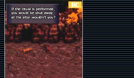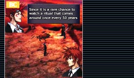 Qu'est ce que ce "Rite d'apaisement de la Planète" transmis de génération en génération au sein de la Tribu ? Le "Rite d'apaisement de la Planète" est un rituel traditionel fait au Canyon Cosmos une fois tous les 50 ans. Un rituel que seul l'espèce de Red XIII peut effectuer. Il fut établi pour la première fois par un mâle une femelle de cette façon. A la fin du rituel, la femelle sera isolée durant 3 ans à l'autel, offrant des prières et de l'appaisement pendant que le mâle devient un guerrier qui protègera la vallée. Bien que Red XIII soit capturer juste avant le rituel par les Turks, il a pu être effectué dans de bonne condition grâce à un arrangement. De plus, du fait que sa partenaire Dinne sois scellée d'elle même pendant le rituel, elle ne peut apparaitre dans Final Fantasy VII. Devinant au fil du temps l'implication du rituel, cz n'est qu'après la séries d'évènements dans Advent Children que Dinne ressort après l'accomplissement de son devoir.